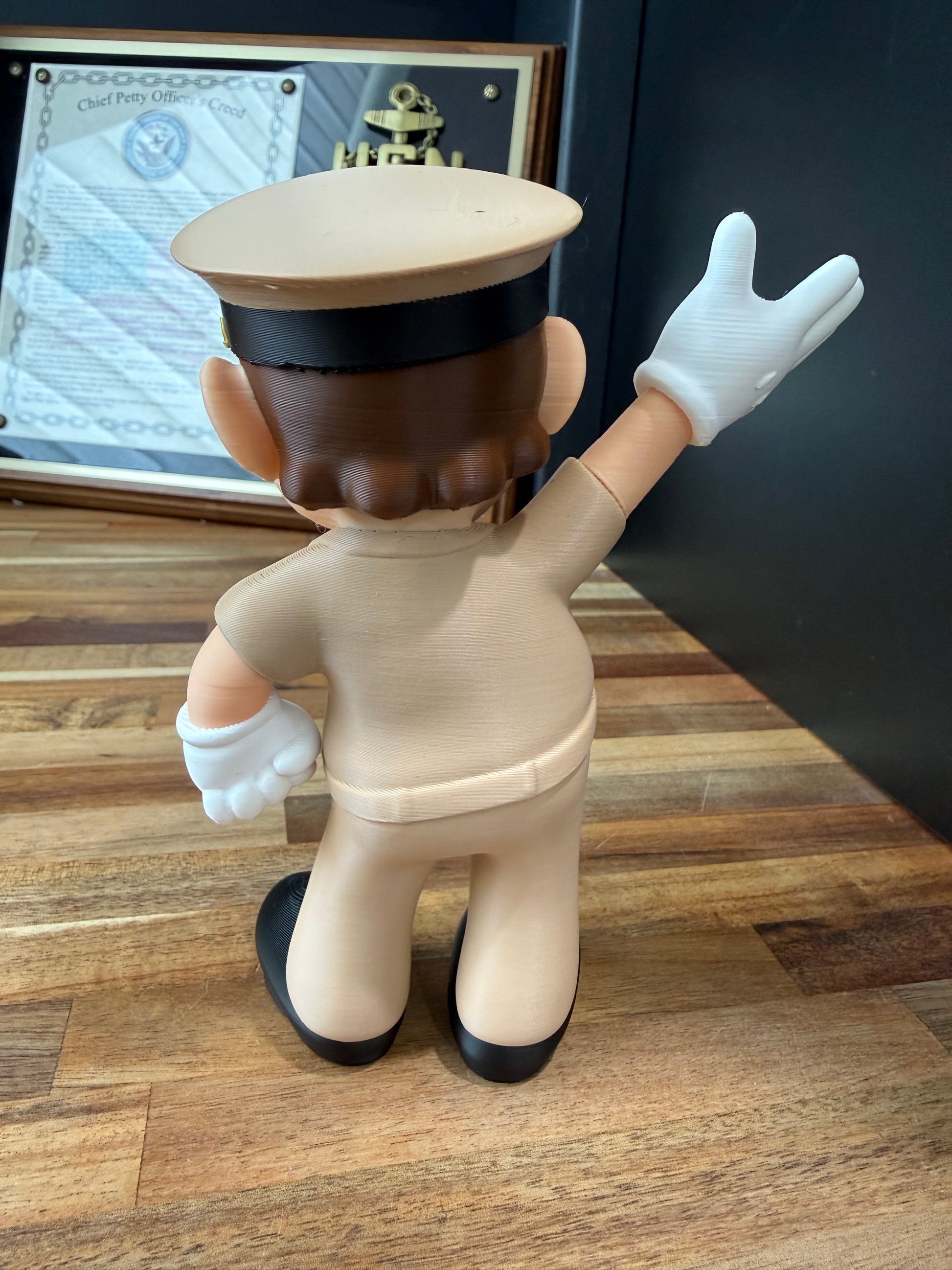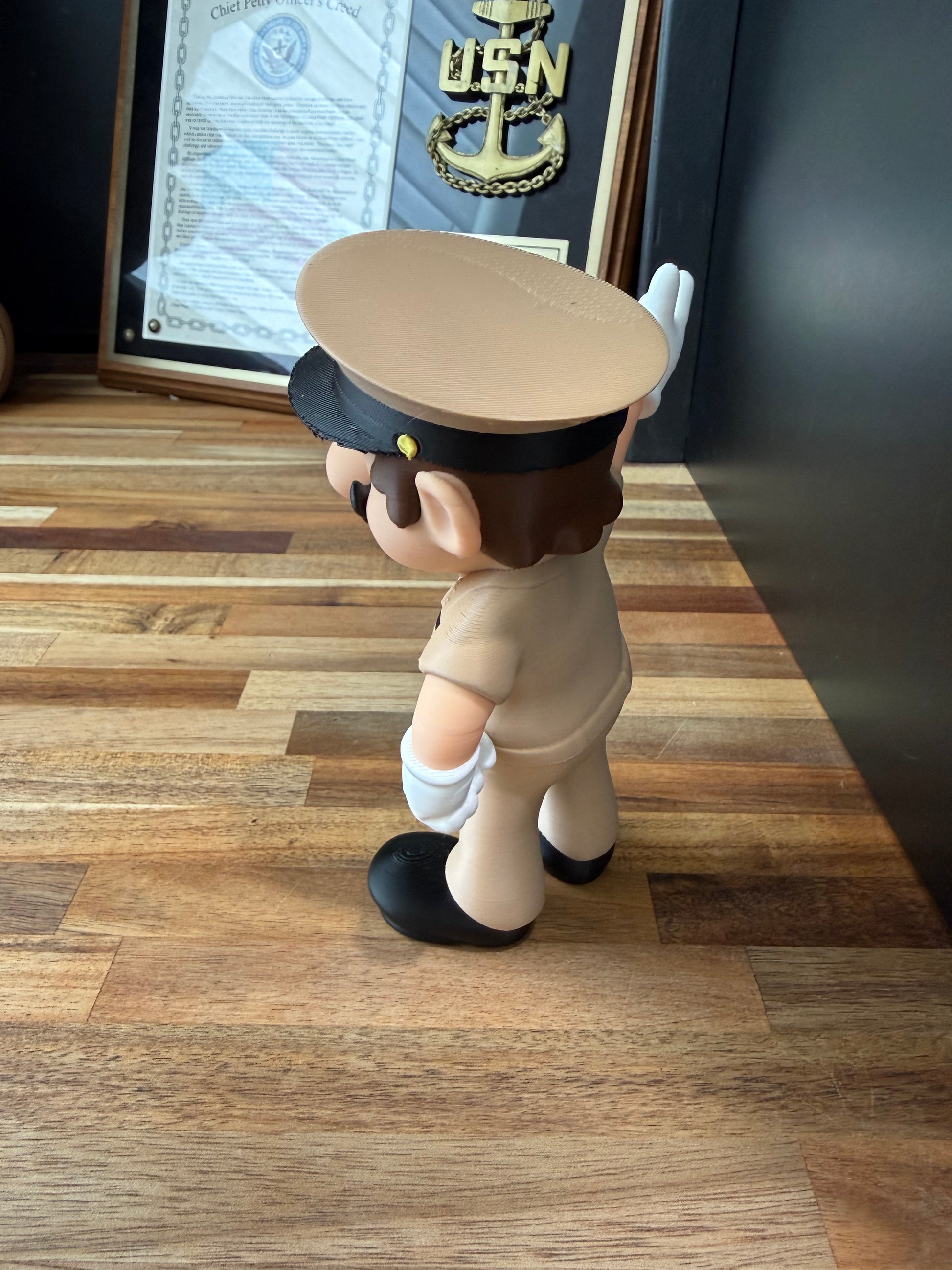 Reporting for duty! Our newest House of Anchors exclusive brings a fun, nautical twist to a beloved classic. This unique collectible features the iconic character proudly dressed in our uniform, standing tall and giving a friendly wave. It’s the perfect blend of nostalgia, service pride, and craftsmanship—made for collectors, gamers, and sea service families alike.
